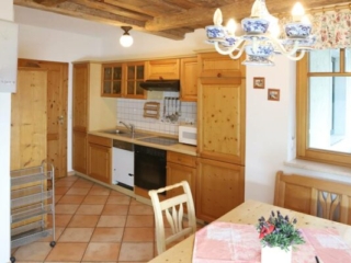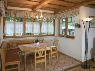 • Esszimmer mit Kachelofen und Küche